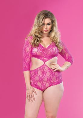 Floral Lace Deep-v Teddy - Pink - Queen Size